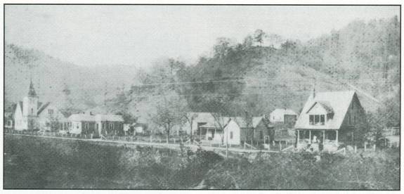 The Maytown Consolidated High School [built in 1926] and the adjoining gymnasium [built in 1930] are shown in the upper right. The Maytown Wildcats played here for many years. See an account of the Tallent brothers, descendants of Reuben May, who began their outstanding basketball careers in this small community.