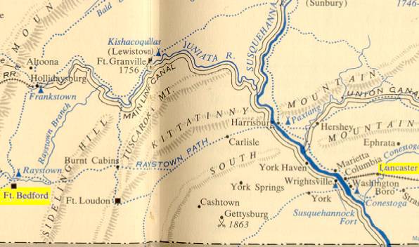 Fort Bedford is located about 120 miles west of Lancaster and 90 miles east of Pittsburgh. Yellow area shown below