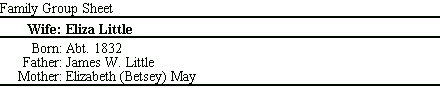 No record is known to exist on Eliza after her being listed in the 1850 census of Blount Co., Alabama