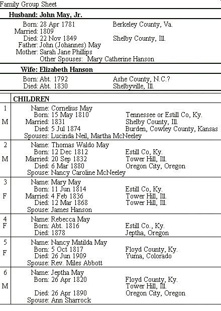 Elizabeth Hanson was a younger sister of John's first wife, Catherine. They were married about a year after Catherine's death.