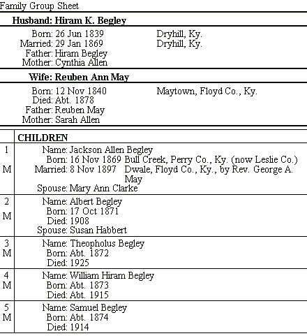 Family of Reuban Ann May and Hiram K. Begley