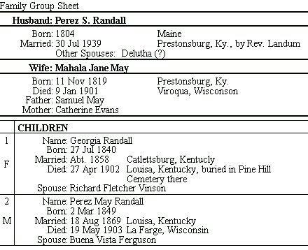 Family of Mahala Jane May and Dr. Perez S. Randall
