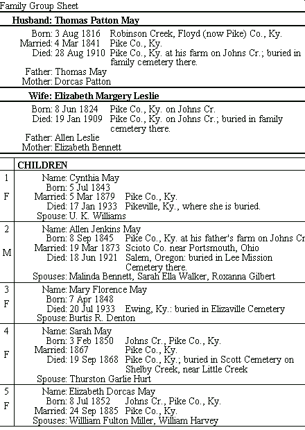 Family of Thomas Patton May and Elizabeth Margery Leslie
