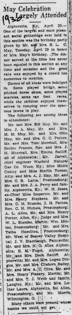 Prestonsburg, Allen, Martin, Langley and Paintsville.
