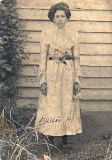 Christian (Crit) May b: 2 Mar 1886 Sookey's Cr., a branch of Robinson Cr., Pike Co., KY d: 1 Sep 1968 Marrowbone, Pike Co., KY, buried at Winright in Winston Adkins Cemetery Age at death: 82 ...... +Dulcie Jane Adkins b: 14 Sep 1890 m: 28 Feb 1913 Pikeville, KY d: 5 Jan 1935 Pike Co., KY (of tuberculosis) Age at death: 44 Photos of Dulcie, her sister & father