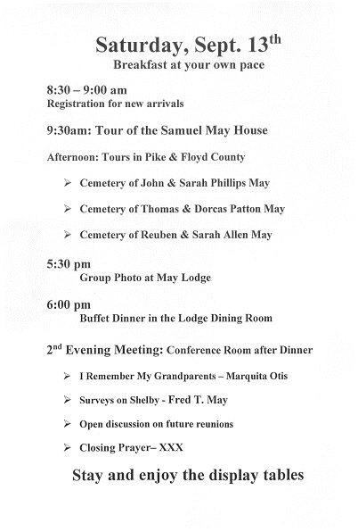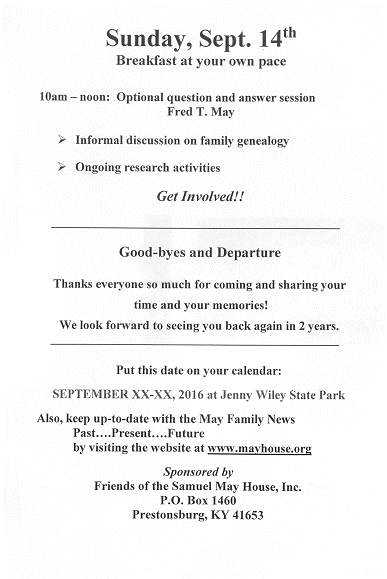 2014 Program May Family Reunion