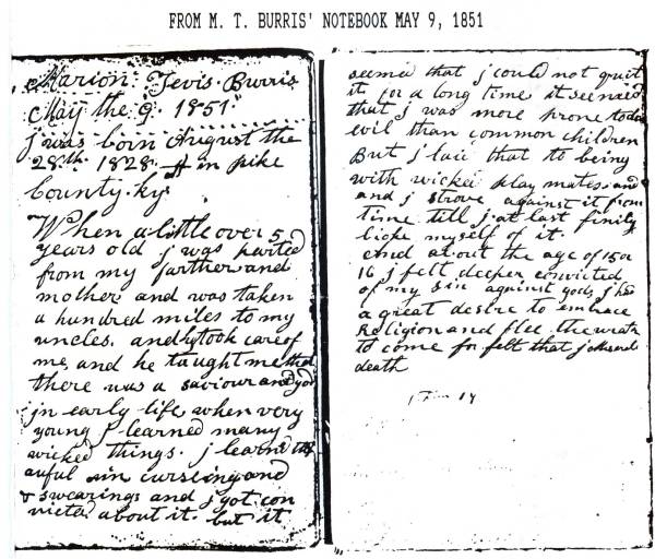 1851 notebook entry Reference: The Burris Family by Steven T. Hurt