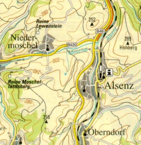 Alsenz, shown beside highway B48 (upper left) on the Alsenz River