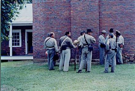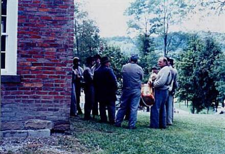 Here we see some Confederate re-enactors relaxing by the May House after their drill. This event occurred on Saturday, August 23rd, 1997. The day was a spectacular one, weather-wise. Skies were blue and no clouds were visible. One of the strongest supporters of the May House Project is John B. Wells III, Commander of Captain William Green Wells Camp #1767, SCV, Boonscamp, Kentucky. John is the owner and operator of Big Sandy Hardware at Hager Hill, Kentucky. John is the co-author of The Yankee Chasers, a book about Colonel Jack May`s 10th Kentucky Cavalry. It was published by Gateway Press of Baltimore, Maryland in 1996. If you are looking for a Confederate ancestor, contact John. |
