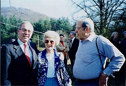 Lt. Governor Paul Patton, Joy James, and Fred James, Sr. at the May House Dedication, November 7th, 1994. Greg Stumbo and Paul Hughes can be seen in the background. Eve May is in the background on the right. Patton supported the project from its inception, and so did Representative Stumbo. Fred James, Sr. is the President of the Big Sandy Historical Society. Eve May is the wife of the late Russell May, well-known Prestonsburg artist. Photo courtesy of Fred James, Jr., Director of Tourism for the City of Prestonsburg. |