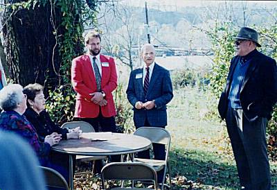 This photo was taken during the May House Dedication, which occurred on November 7th, 1994. Sitting at the table are Allie May and Lucille May, wives of E. B. May and Bill May, respectively. The man in the red jacket is Jerry Fannin, Mayor of Prestonsburg. Next to Jerry is John Rosenberg, legal counsel for Friends of the Samuel May House, and on the right is Robert Perry, president of the organization. Photo courtesy of Fred James, Director of Tourism for the City of Prestonsburg. |