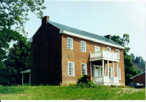 This photo shows the May House as it looked during the Summer of 1997. In May, 1997, city workers laid down a gravel path from the bottom of the May House Knoll to the front porch. They also contoured the hill and seeded it. Plans are underway to build a split-rail fence along the bottom property line and up the hill along the road which borders the property on the north. In frontier Kentucky such fences were a common sight. The property will be landscaped to create the illusion that the house is still standing in the middle of an untamed wilderness. A path will wind up the hill to the house through a meadow of wild grasses. |