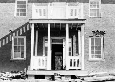 This photo shows the front porch of the May House as it looked in March, 1997, when the restoration was still in progress. The porch`s design is based on patterns common to the Federal Period. We don`t know what the original porch looked like. Eastern Kentucky houses of the antebellum period often had balconies. In the years before microphones and public address systems, balconies often served politicians as pulpits from which to address large crowds. Tress May Francis claims that Samuel was an excellent orator, and that his senatorial speeches were `considered fine` by all who heard them. |