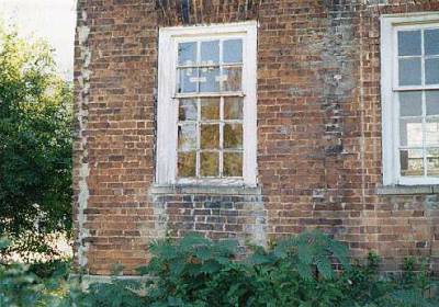 Taken in the Fall of 1995, this photo shows the north part of the front facade as it looked before restoration.
