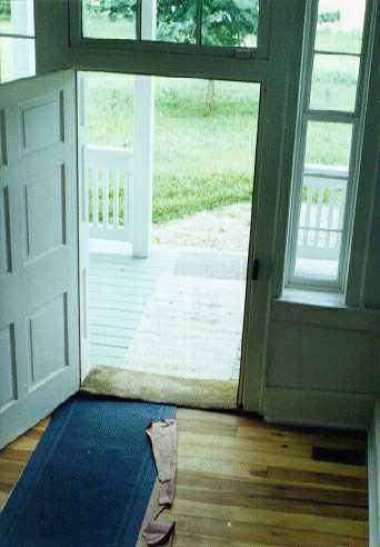 This photo shows the front doorway of the house. The rectangular sidelights are original and typical of the Federal style. The door is also original and still has its original lock and key. The key is six inches long. The foyer probably contained a pier table, a chair or two, and a grandfather`s clock. Fred James, Sr. of Prestonsburg has agreed to donate an antique grandfather clock to the May House. It will be placed on the north wall of the foyer. If you have a piece of furniture that you would like to donate to the May House, contact Sam Hatcher, President, Friends of the Samuel May House, Inc., P. O. Box 1460, Prestonsburg, Kentucky 41653. |