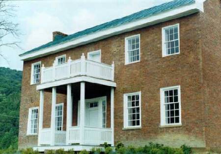 This photo shows how the front facade looked in August, 1997. Right now we are having a problem with mud splattering the exterior walls during rainstorms. This problem will be solved when we finally get our rain gutters installed. I would like to encourage all the Floyd Countians who read this to come to the meetings of the Friends of the Samuel May House and get involved in the project. We meet at the May House at 7 p.m. every fourth Monday of the month. |