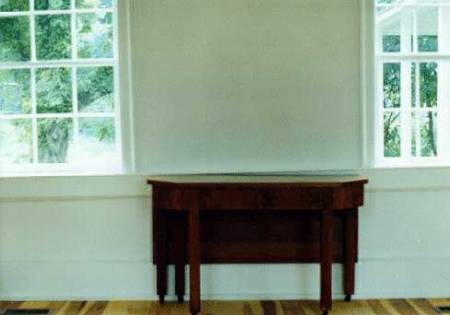 This photo shows a beautiful maple drop-leaf table which once belonged to Colonel Andrew Jackson May. It was donated to the Friends of the Samuel May House by Jean and Roy Kinsey of Salem, Virginia. Jean is one of Colonel May`s descendants. Although key pieces of furniture will be displayed in the house, the rooms will remain relatively empty, allowing visitors to move freely through the house. A high priority will be placed on May family heirlooms, like this one. If you have a piece of furniture which you would like to donate to the house, contact Sam Hatcher, President, Friends of the Samuel May House, P. O. Box 1460, Prestonsburg, Kentucky 41653. |